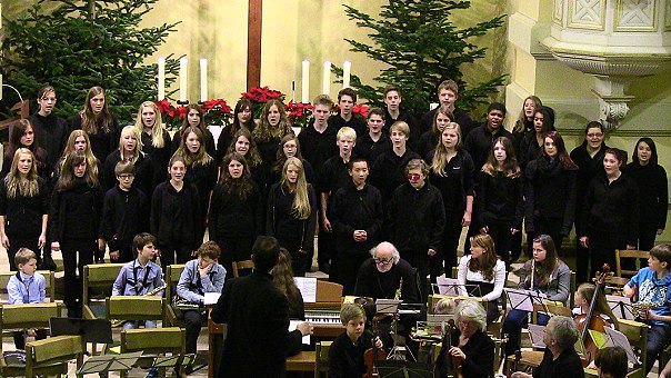 Musikalisch gestaltet wurde das Programm unter Plagges Leitung vom Kammerorchester der Musikschule und vom großen Musikschulorchester sowie mehreren Kinder- und Jugendchören. Mehr oder weniger bekannte Advents.- und Weihnachtslieder, bei denen die Gäste anhand ausgeteilter Noten- und Textblätter kräftig mitsingen konnten, wechselten sich mit den Darbietungen der Chöre ab. Mit dabei waren die "Spatzenchöre" der Grundschulen, die Kinderchor Pleutersbach, der Chor der Steige-Grundschule, der Nachtigallenchor (3. und 4. Klasse) in Kooperation mit der Dr.-Weiß-Gundschule, "The Joy and Cheers" (5. bis 7. Klasse) und der Jugendchor "Voices of Heaven" (ab 8. Klasse). Letztere drei Chöre gehören zur "Singschule" von Achim Plagge.
