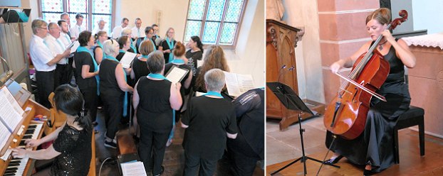 Katholischer Kirchenchor begeisterte – Dances mit Alexandra Netzold (Fotos: privat)(bro) (qu/as) „Was wären unsere Kirchen ohne Ökumene?“, fragte Roland Ziegler, Vorsitzender des "Fördervereins Klosterkirche Hirschhorn", zu Beginn der diesjährigen Auftaktveranstaltung (26. Juni) rhetorisch in die Runde, und nur wenige Sekunden später war der Altarraum der kleinen evangelischen Kirche in Hirschhorn ausgefüllt mit Klängen des gesamten menschlichen Vokalspektrums vom Bass bis zum Sopran.