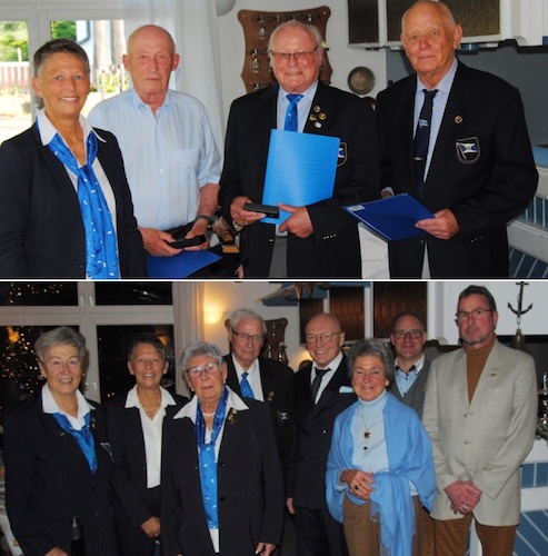 Kerstin Thomson, Helmut Scheuenpflug, Robert Moray, Peter Kraft. Unten: 50-, 60- und 65-jährige Mitgliedschaften - vorgenommen von Kerstin Thomson. V. l.: Theresia Wagner (60 Jahre), Kerstin Thomson, Helga Schwarz (65 Jahre), Werner Schwarz (65 Jahre), Gunter Mayer (60 Jahre), Ingrid Moray, Ralph Moray, Jörg Moray (alle 50 Jahre)