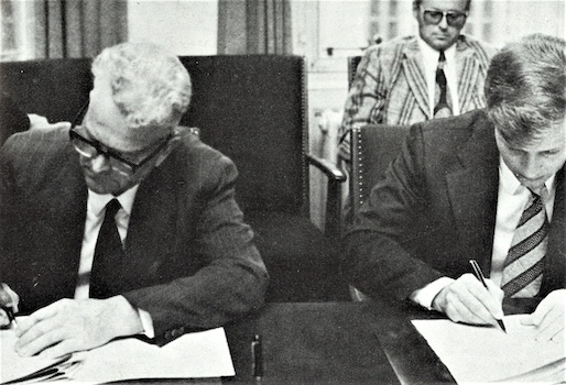 Unterzeichnung des Vertrags am 12. Juni 1973 Bürgermeister Karl Münz (l., Pleutersbach) und Bürgermeister Horst Schlesinger (r., Eberbach) unterzeichneten die Eingemeindungsvereinbarung am 12. Juni 1973. (Fotonachweis: Stadtarchiv Eberbach) (bro) (stve) Vor fast genau 50 Jahren, am 12. Juni 1973, wurde der Vertrag unterzeichnet, seit 1. Januar 1974 ist Pleutersbach eingemeindet. Stadtarchivar Dr. Marius Golgath, der bereits über die Eingemeindung von Friedrichsdorf seit Januar 1973 (Vertrag November 1972) berichtete, hat sich nun auch mit der Eingemeindung von Pleutersbach beschäftigt.