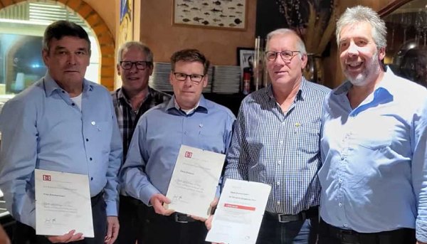 Unser Bild zeigt die Geehrten mit Vorstandmitgliedern, v.l.n.r.: Fritz Zimmermann, Ulrich Zimmermann, Klaus Büchner, Gerd Zimmermann, Horst Zimmermann.