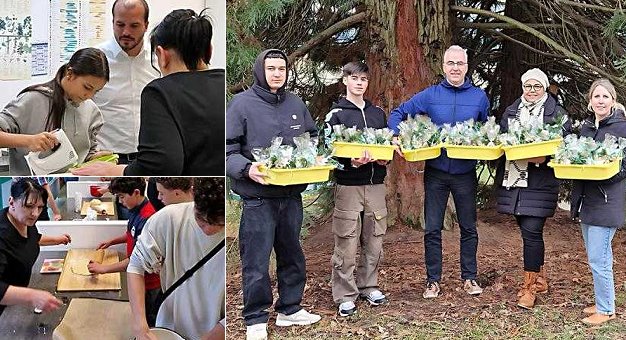 In einer gemeinsamen Aktion mit Schülern und Schülerinnen der Realschule Eberbach hatten sich die beiden Vorstandsvorsitzenden der AWO Eberbach, Jan-Peter Röderer und Büsra Isik, mit Gabi Martina (Leiterin der AG Backen und Mehr) in der Schulküche der Realschule Eberbach getroffen, um Weihnachtsplätzchen zu backen. Die Zutaten für die bevorstehende Backaktion wurden von Gerhard Kessler, Geschäftsführer des hiesigen REWE-Supermarkts, gespendet. In der Schule hatten die beiden Lehrkräfte Christina Frischholz und Martin Kohler bereits einige Kinder in Richtung Küche begleitet, wo sie sich gleich bereitwillig an die Arbeit machten. Unter dem geschulten Auge von Gabi Martina packten alle gemeinsam mit an. Sie stellte auch die Rezepte zur Verfügung. Büsra Isik hatte auch im Vorfeld bereits Plätzchenspenden organisiert, einige Eltern hatten ihren Kindern ebenfalls Plätzchen mitgegeben für die Aktion. Die Schule hatte in verschiedenen Klassen noch weiteres Gebäck für die Aktion hergestellt, so dass am Ende stolze 110 Tütchen mit Weihnachtsgebäck gepackt werden konnten. Jan-Peter Röderer und Büsra Isik verteilten diese gestern gemeinsam im Rahmen der AWO-Weihnachtsaktion.