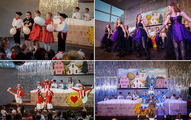 Zum Schluss wurden alle Kinder eingeladen, sich auf der Bühne zum Tanzen zu gesellen. Mit einer schwungvollen Polonaise durch den Saal sorgten die mitwirkenden Kinder für ausgelassene Stimmung.