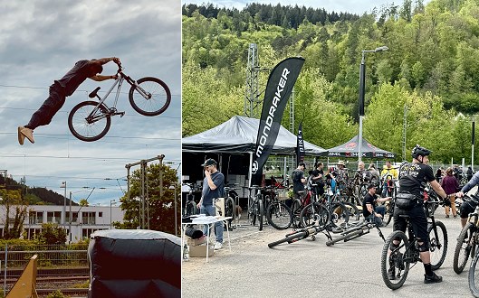 Besondere Besucher-Highlights waren am extra aufgebauten Airbag zu beobachten: Hier konnte man mutigen Bikern und Bikerinnen dabei zusehen, wie diese gewagte Jumps und Salti mit ihren Bikes vorführten und im weichen Luftkissen wieder landeten - unter anderem die Eberbacher Martin Riedl und Marvin “Mupfen†Kaufmann.