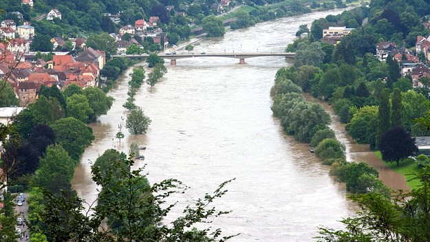 Bis morgen Abend wird eine Normalisierung der Lage erwartet (Foto: Hubert Richter)(hr) In Eberbach erreichte das Hochwasser heute Nachmittag seinen Scheitelpunkt bei einem Pegelstand von 7,20 Metern am Neckarlauer. Seit dem Abend fällt der Wasserstand des Neckars wieder.