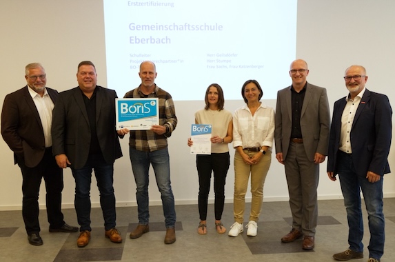 ermöglicht werden, wurde der Jury an verschiedenen Stellen gezeigt: sei es das digitale und moderne Arbeiten im Makerspace, genannt „EberSpace“, oder aber bei der Führung durch den Schulgarten und Verköstigung mit im eigenen Holzkohleofen gebackenem Flammkuchen. „Uns war nach einem abwechslungsreichen Audit klar: An der Gemeinschaftsschule Eberbach wird vorbildlich gezeigt, wie gute Berufsorientierung gelingen kann“, gab der Juror die Eindrücke wieder. Lehrerschaft und Schulleitung zeigten mit Unterstützung der Stadt Eberbach und des regionalen Netzwerks an Kooperationspartner ein „herausragendes“ Engagement, das die Verleihung des „BoriS-Siegels“ verdiene. SchlieĂźlich eröffne dieses reichhaltige Angebot den Kindern und Jugendlichen im Laufe ihrer Schulzeit an der Eberbacher