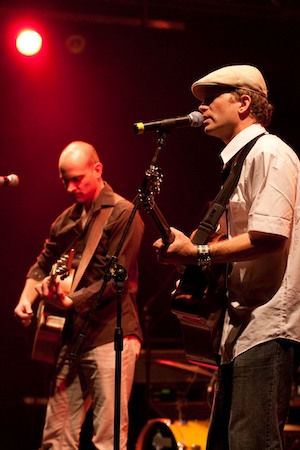 Die Basis bildet ein akustisches Gitarrenduo, das je nach Gelegenheit mit Percussion/Drums und Bass unterstützt wird. So gelingt es den Musikern, ruhige, einfühlsame Fingerpicking-Stücke und ein anderes Mal treibende und eingängige Rocksongs, jeweils mit perfekt harmonisierendem mehrstimmigen Gesang abzuliefern. Da werden Erinnerungen an bekannte Musikgrößen geweckt, wie Patti Smith, Donovan, Cat Stevens oder Leonard Cohen, die mit unterschiedlichen musikalischen Grundlagen ein eigenes Genre prägten. Das Motto des Abends verrät die Richtung, die das Duo einschlagen will: den warmen, harmonischen Sound von Simon & Garfunkel.