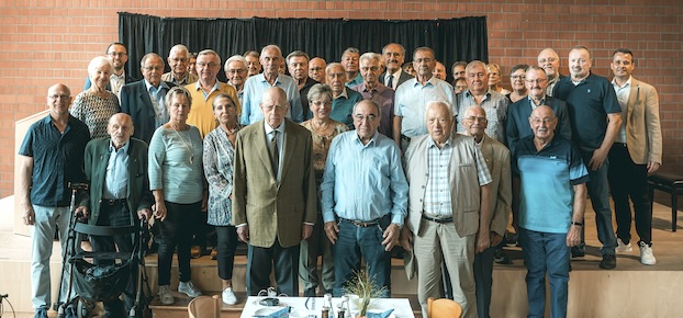Ehrungen und wertvolle Informationen zu Betrugsmaschen Die geehrten Mitgliederjubilare mit Vorstand Christian Menges (hintere Reihe 1.v. l.) und Steffen Schölch (hintere Reihe 1. v. r.). (Foto: Volksbank Neckartal)