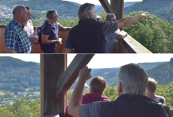 Rundblick über die Stadt- und Landschaftsgeschichte (Fotos: Barbara Gusz)(bg) Am vergangenen Mittwoch, 17. Juli, lud Hubert Richter erstmals in diesem Jahr wieder zum informativen “Turmtreff mit dem Förster” auf dem Ohrsbergturm ein. Weitere Termine gibt es noch bis 28. August.