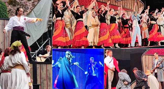 Ein top besetztes, begeisterndes Ensemble, beeindruckende Fechtszenen – hier hat der Fechtchoreograf (Jean-Loup Fourure) ganze Arbeit geleistet -, überhaupt die einfallsreiche Choreografie (Camilla Matteucci) für Chor und Solisten, dazu Solo-Tänzer (Christin Reiter, Margherita Sabbadini, Joel Zupan, Daniel Ojeda) und ein bestens aufgelegter und spielfreudiger Festspiel- und Kinderchor sowie die Kindersolisten Jakob Rickert (junger Ramon), Conner Reinig (Junger Diego) und Dora Roth (junge Luisa) machten den Abend zu einem echten Musicalerlebnis.