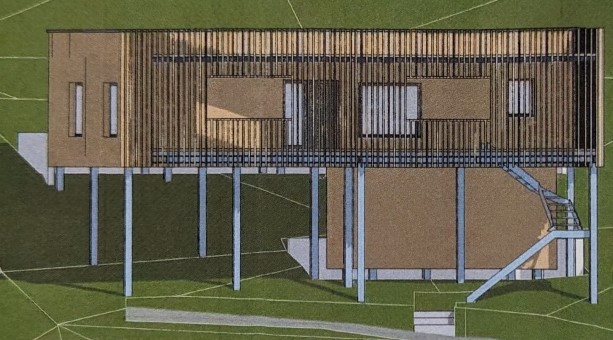 Geplant ist ein Bauvorhaben im Eberbacher Ortsteil Friedrichsdorf in modularer Massivholzbauweise (unser Bild). Das bedeutet, dass die Wandelemente zurückgebaut und weiterverwendet werden können. Das beantragte Flachdach soll extensiv begrünt und das so gespeicherte Wasser als Grauwasser nutzbar gemacht werden. Da das Haus auf Schraubfundamente gegründet wird, also quasi “auf Stelzen steht”, ist mit fast keiner Flächenversiegelung zu rechnen. Laut Carmen Seel vom Stadtbauamt soll dieses Gebäude eine Art “Musterhaus” werden. Der Ausschuss erteilte das gemeindliche Einvernehmen einstimmig.