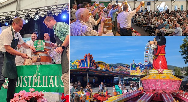 Das traditionelle Volksfest mit Zelten, Fahrgeschäften, Bewirtungs- und Verkaufsständen dauert noch bis Dienstagabend, 27. August. Dann wird es nach Einbruch der Dunkelheit mit einem Feuerwerk seinen Ausklang finden.