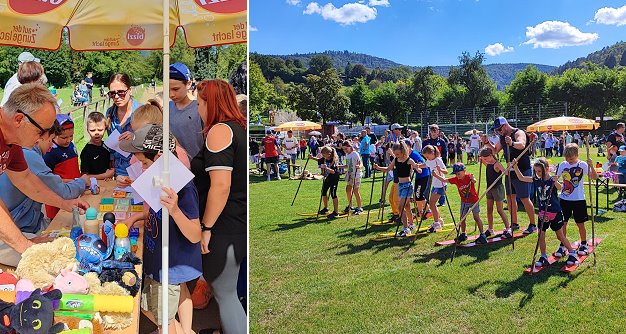 Die Kinder strahlten mit der Sonne um die Wette, als Reichert das Fest auf dem Sportgelände in der Au kurz vor 14.30 Uhr eröffnete. Etwa 15 Mitglieder des Eberbacher Sportclubs (ESC) und zahlreiche städtische Mitarbeiterinnen und Mitarbeiter waren vorort, um an altbewährten Spielstationen für einen reibungslosen Ablauf zu sorgen.