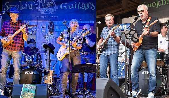 Feiernde Farmer und musikalische Abenteuer auf der Snake Farm (Fotos: Bianca Weber-Götzenberger/Barbara Gusz)(bro) (sös) Originelle Sounds, kreative Gitarrendesigns und Wohlfühlatmosphäre: Auch im „verflixten“ siebten Jahr begeisterte das „Smokin´ Guitars-Festival“ im Rahmen der Pleutersbacher StraĂźenkerwe Publikum wie Musiker gleichermaĂźen. Nicht nur Topact Jack Shealy aus Florida lobte den besonderen Charme der Veranstaltung, auch das Publikum feierte am vergangenen Wochenende bis spät in die Nacht die internationalen Musiker auf der feinen Festivalbühne.