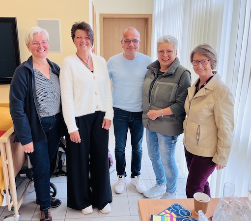 45 Jahre ambulanter Pflegedienst und 40 Jahre Nachbarschaftshilfe V. l.: Karin Hemberger (PDL), Gabriele Völker (geschäftsführender Vorstand), Jan Frey, Ulrike Göhrig und Ursula Clifford (Hospizverein). (Foto: privat)(bro) (pm) Am Samstag, 12. Oktober, öffnete die Kirchliche Sozialstation Eberbach e. V. ihre Türen. Gefeiert wurde das 45-jährige Bestehen des ambulanten Pflegedienstes sowie das 40-jährige Jubiläum der Nachbarschaftshilfe.