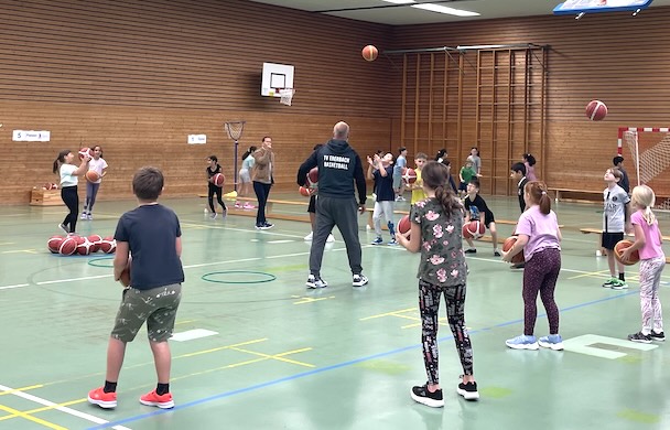Nachdem sich die Dr.-Weiß-Grundschule im vergangenen Jahr für die offizielle Aktion beworben hatte, die der Basketballverband Baden-Württemberg in Zusammenarbeit mit dem Deutschen Basketballbund jährlich veranstaltet, waren sich die Schulleitung, Katharina Harslem, Adrian Glaser und Kayhan Isik schnell einig geworden, die Aktion in diesem Jahr auch ohne Verband durchzuführen. Immerhin sind die drei ausgebildete Trainer und wissen, wie man anderen den Basketballsport näherbringt.