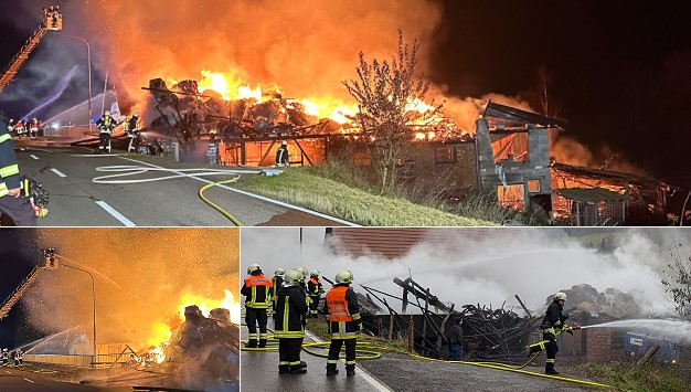 Landwirtschaftliches Gebäude brannte komplett nieder (Fotos: privat / Hubert Richter)(hr) Hoher Sachschaden entstand in der vergangenen Nacht bei einem Großbrand in Ober-Sensbach.