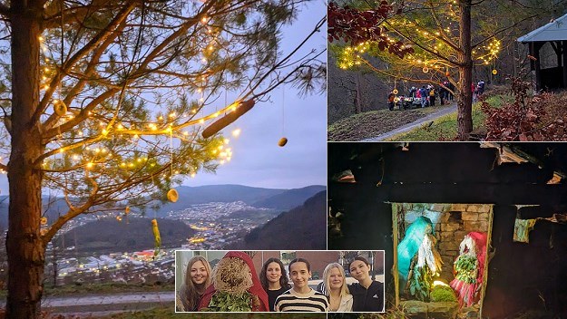 Stimmungsvolle Waldkrippe am Weg zur Bauriedhütte  (Fotos: Hubert Richter/privat)(bro) (stve) Seit dem 3. Advent, 15. Dezember, leuchtet wieder der Waldweihnachtsbaum am Itterberg hoch über Eberbach-Nord. Und nach der Premiere im Advent 2023 kann auch in diesem Jahr eine Waldkrippe am Wegesrand bestaunt werden.