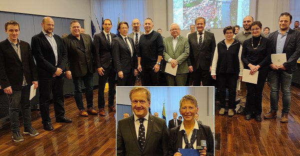 AGL-Stadträtin Kerstin Thomson erhielt den silbernen Ehrenring der Stadt für 15-jährige Tätigkeit im Gemeinderat (kleines Bild mit Bürgermeister Peter Reichert). Thomson war am 7. Juni 2009 erstmals ins Stadtparlament gewählt und bei den Wahlen 2014, 2019 und 2024 jeweils im Amt bestätigt worden.