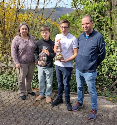 Zielsicher zum Schoko-Hasen V.l.: OSM Karin Kreß, Luis Wernz, Linus Schüßler und OSM Thomas Müller. (Foto: privat)(bro) (ws) Das zweite Ostereierschießen des SSV 1487 Eberbach am vergangenen Samstag hatte wieder viele Schießsportfreunde angezogen, die sich im Schützenhaus im Holdergrund auf die Jagd nach Eiern machten.