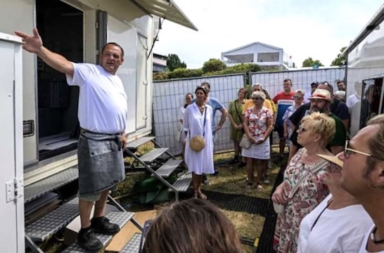 Teilnehmerinnen und Teilnehmer erfahren auf dem etwa vier Stunden dauernden Rundgang über das Wiesenmarktgelände, wie es um die Marktlogistik bestellt ist und wie viel Aufwand an Personen und Material, Investitionen und Kosten nötig ist, um einen Schaustellerbetrieb erfolgreich zu unterhalten.