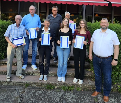 Für zehnjährige Mitgliedschaft wurden bzw. werden noch mit Urkunde und Präsent ausgezeichnet: Timo Bracht, Udo Laule, Anna Müller, Ida Müller, Bruno Schmitt, Heidi Schuster, Johann Schuster und Wilfried Wieder. Für 25-jährige Mitgliedschaft: Ursula GriĂźtede und für 40-jährige Mitgliedschaft: Dietrich Müller sowie das „Landhaus Neckarblick“. Seit 50 Jahren ist die Stadt Eberbach Mitglied im Verein – die Ehrung nahm stellvertretend Kerstin Thomson entgegen.