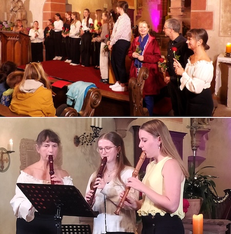 Danach bekamen alle Künstlerinnen Blümchen, und Paul Kessler vom Förderverein verlas in Abwesenheit der Patres den Abendsegen.