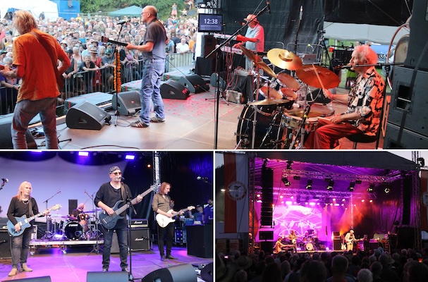 Treffen der Legenden (Fotos: Thomas Wilken)(tom) Es war ein Treffen der Legenden beim 41. Finkenbach-Festival im kleinen Oberzent-Stadtteil. Erstmals seit langen Jahren standen „Guru Guru“ und „Kraan“ wieder auf der Bühne. Das „Woodstock des Odenwalds“ verzeichnete an zwei Tagen einen überragenden Besuch, der fast an die Zahlen der ausverkauften Veranstaltung von 2019 heranreichte. Denn auch die anderen Bands waren allererste Sahne und unterhielten die Fans bis tief in die Sommernächte.