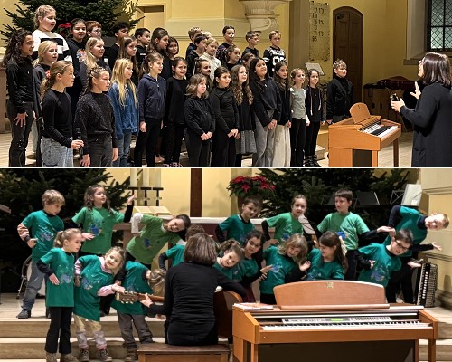 Es folgten die Ensembles und Kinderchöre, die jeweils ihren eigenen musikalischen Charakter auf die Bühne brachten: Das Ensemble “SüĂźwasserfische“ (Leitung: Mario Fadani), der Spatzenchor Stadt (Leitung: Kriemhild Pfeifer), das Ensemble “KoWaTü“ (Leitung: Mario Fadani) und der Kinderchor Schönbrunn (Leitung: Caroline Bauer). Mit groĂźer Freude und spürbarer Begeisterung führten die Kinder ihre Lieder auf. Der Nachtigallenchor (Leitung: Christina Morcinek-Nocco) schuf mit “A Million Dreams“ moderne Klangfarben, bevor mit “SüĂźer die Glocken nie klingen“ wieder traditionelle Adventstöne erklangen. Für einen feinen Klang sorgte Felicitas Meier (Querflöte), Schülerin von Uta Katzenmaier.