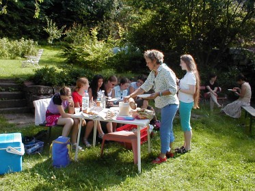 KAFF- Projekt Zum Abschluss der vierwöchigen Veranstaltungsreihe "Mädchen stark machen" wurde auf Wunsch der Mädchen eine Radtour von Eberbach zum Neckarhäuser Hof durchgeführt. Rechts im Bild Kursleiterin Jutta Barner-Grüber, die an diesem Nachmittag auch für das leibliche Wohl der Kursteilnehmerinnen sorgte. (Foto: Charlotte Schneidewind-Hartnagel)(ub) (csh) Das Projekt „Mädchen stark machen“ des Kommunalen Arbeitskreis Für Frauen (KAFF) geht in die 2. Runde.