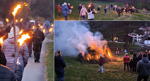 (hr)Fast genau zum kalendarischen Frühlingsanfang wurde gestern Abend in Schönbrunn-Allemühl mit dem Frühlingsfeuer dem Winter symbolisch der Garaus gemacht.