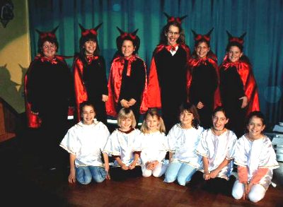Generalprobe bei den Eulenküken Unser Foto zeigt die Tanzgruppe nach der Generalprobe. (Foto:privat)(jc) (wr) Die Eulenküken, jüngste Tanzgruppe vom Club Eulenspiegel, proben seit Wochen für ihren Auftritt bei den drei Prunksitzungen in der Rockenauer Festhalle. Nach den großen Erfolgen in den letzten Jahren haben sich die Trainerinnen Carola Erb und Carola Zimmermann für die diesjährige Saison mit dem Tanz der Engelchen und Teufelchen wieder etwas Neues ausgedacht. Eigens hierzu wurden die Kostüme von den beiden Trainerinnen selbst entworfen und genäht. Für die Prunksitzungen am Samstag, 15. Januar, und Freitag, 21. Januar, können noch Karten bei Roswitha Wagner, Telefon (06271) 5879, bestellt werden.
