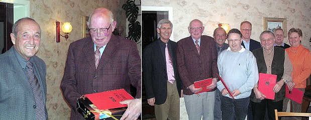 SPD-Mitgliederversammlung mit Ehrungen Linkes Bild: Der OV-Vorsitzende Manfred Wernz mit dem für 50 Jahre Mitgliedschaft geehrten Heinrich Koch. Rechtes Bild v.l.: Gert Weisskirchen MdB, Heinrich Koch, Manfred Wernz, Dr. Uli Rietdorf, Günter Götz, Heinz Gerbert, Dieter Jeitner und Ursula Scheidl. (Fotos:privat)(hr) (mw) Zu Beginn der Mitgliederversammlung im Restaurant "Zur Marienhöhe" wählten die Mitglieder elf Delegierte für die Nominierungskonferenz im Landtagswahlkreis 41. Nach dieser Pflichtaufgabe freute sich der Ortsvereinsvorsitzende Manfred Wernz, langjährige Mitglieder ehren zu können: für 25 Jahre Ursula Scheidl, Günter Götz, Dieter Jeitner, für 30 Jahre Heinz Gerbert, Uli Rietdorf. Eine besondere Ehrung erfuhr Heinrich Koch, der 1955 in die SPD Eberbach eingetreten war.