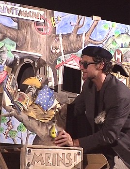 Rabe Socke besuchte Eberbach (Foto:C.Richter)(cr) Auf Einladung des Kulturamts war gestern der Rabe Socke im Kleinen Saal der Stadthalle Eberbach zu Gast. Zahlreiche Kinder und Erwachsene beobachteten erstaunt, mit welchen Tricks der kleine Rabe seinen Freunden das Lieblingsspielzeug wegnehmen konnte. Weil "Socke" beispielsweise laut jammerte, heftigst drohte oder seinen Freund, das Wildschwein, ablenkte, gelang es ihm zahlreiche Schätze in seinem Nest zu verstecken. Allerdings merkte er schnell, dass er nun, weil er diese Sachen bewachen musste, nicht mehr mit seinen Freunden spielen konnte, die ihm eigentlich auch wichtig waren. Deshalb gab er seinen Freunden die Sachen zurück, und alle spielten wieder gemeinsam.