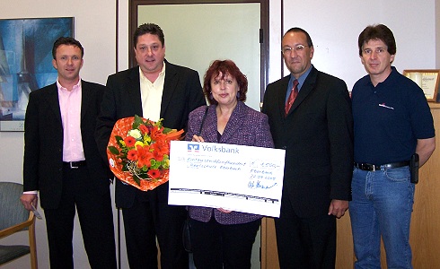 Auch eine Kooperation mit der Realschule Eberbach wurde aufgebaut, wo die Cooper Crouse-Hinds GmbH die Arbeit für den Umweltschutz mit großzügigen Spenden unterstützt. Heute morgen überreichte der Vice President und General Manager Europe Clife Hermanowski im Beisein von Vice President Operations Strategy Europe Hays Lengyel, dem Konzernbetriebsratsvorsitzenden Gerd Balles und dem Manager Europe Environmental, Safety & Health Thomas Eickhoff der Rektorin der Realschule Regine Sattler-Streitberg einen Scheck in Höhe von 1500 Euro.