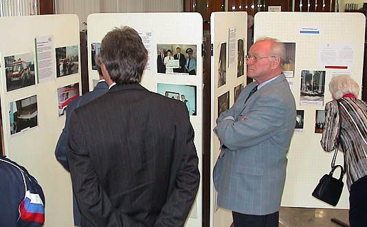 "Damals beschlossen viele Hilfsorganisationen zu helfen. In Eberbach begann das örtliche DRK 1992 mit der Einladung von Kindern aus dem Krisengebiet. 1993 wurde der Förderkreis Odenwaldhilfe für Tschernobyl-Kinder e.V. gegründet", erinnerte Wilfried Herbold, Vorstandsmitglied der Volksbank Neckartal. Hilfe zur Selbsthilfe zu leisten sei schon Ziel der Gründerväter der Bank gewesen. Und so sei es für die Bank selbstverständlich, auch die OTK zu unterstützen. So ist es möglich, dass ab heute in den Schalterräumen der Volksbank in der Bahnhofstraße in Eberbach eine Ausstellung zu sehen ist, bei der den Betrachtern deutlich wird, mit wieviel Engagement hier viele Helferinnen und Helfer im Einsatz sind und wieviele Hilfsprojekte schon gelaufen sind bzw. noch laufen. Bei der heutigen Eröffnung ließ Dr. Adelmann die vergangenen Jahre Revue passieren. Inzwischen haben mehr als 800 Kinder aus Mosyr ihre Ferien in Eberbach verbracht, Kliniken in Mosyr und Umgebung wurden unterstützt. So wurden neben OP-Tischen, medizinischen Geräten und Medikamenten auch vier Rettungswagen gestiftet. Eine Schule und verschiedene Kindergärten werden von Eberbach aus unterstützt, Senioren wurden gemütliche Nachmittage beschert. 1995 wurde ein medizinisches Zentrum zur Rehabilitation behinderter Kinder und Jugendlicher in Angriff genommen. Inzwischen wurden 46 Lkws mit Gütern nach Mosyr geschickt - etwa 1.000 Tonnen Sachspenden, die hier in Eberbach von vielen Helferinnen und Helfern durchgesehen und gepackt werden.