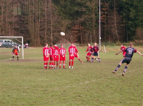 ISV Kailbach – TSV Günterfürst 1:1 (1:1) Freistoß von Fabian Wien traf nur das Lattenkreuz (Foto: Friedrich)(lf) (fm) Im letzten Heimspiel vor der Winterpause hatte die ISV Kailbach das punktgleiche Team aus Günterfürst zu Gast. In der 4. Minute kam die ISV zum ersten Eckstoß, der aber von der TSV Hintermannschaft geklärt wurde und diese setzten über Moritz Flick zum Konter an. Flick passte kurz vor dem ISV Strafraum in den Lauf von Josef Gunn und dieser versenkte die Kugel zur frühen 0:1 Führung der Gäste. In der folgenden Zeit passierte nichts besonderes, sodass es erst in der 30. Minute wieder gefährlich wurde. Steffen Wien schoss auf das kurze Eck des TSV Gehäuses, aber Günterfürsts Schlussmann Michael Heckmann klärte zur Ecke. Den folgenden Eckball trat Resul Tekin hoch in den Strafraum, wo Andreas Graf mit dem Kopf zur Stelle war und den Ball flach aufs kurze Eck drückte, jedoch war erneut Heckmann mit einer guten Parade zur Stelle. Fabian Wien hatte in der 39. Minute mit seinem Freistoß aus aussichtsreicher Position die Möglichkeit zum Unentschieden, aber der tolle Schuss traf nur das Lattenkreuz. Nur drei Minuten danach war es dann soweit; Ausgleich!