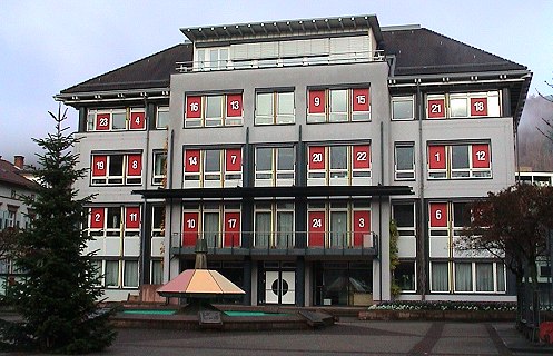 Nachdem der "große" Adventskalender am Rathaus im letzten Jahr von den Bürgerinnen und Bürgern positiv angenommen wurde, wird auch in der diesjährigen Adventszeit vom 1. bis 23. Dezember jeweils um 17 Uhr ein "Türchen" geöffnet. Gruppen der katholischen und evangelischen Kirchengemeinden haben gemeinsam die Fenster am Rathaus gestaltet. Das erste Fenster wird am Freitag vom Kindergarten Regenbogen geöffnet. Am 24. Dezember findet bereits um 11 Uhr der Abschluss statt. An verschiedenen Tagen wird der Posaunenchor musikalisch umrahmen.