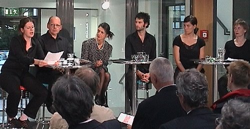 Christiane Nothofer, Anke Siefken, Hannes Höchsmann, Helge Gutbrod und Christa Schmalzried, die zusammen mit der Vertreterin des Intendanten Carsten Ramm, Christina McCornmick, nach Eberbach gekommen waren, stellten in kurzen Auszügen Stücke des neuen Spielplans 2007/2008 vor.