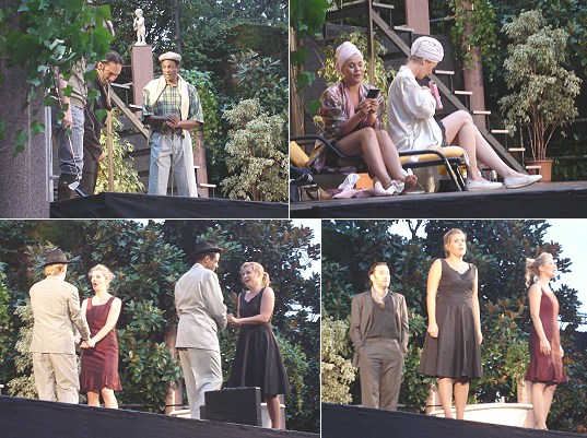 Dritte Hauptproduktion in Zwingenberg – Mozarts Komische Oper oder: So machen es alle Frauen Anfangsszenenbilder aus dem 1. Akt der Aufführung am vergangenen Freitag in der Inszenierung von Annette Wolf. Das gesamte Ensemble mit Chor realisierte eine lebendige Aufführung mit hoher Dynamik. (Fotos:Gündling)(ag) „Così fan tutte“ von Wolfgang Amadeus Mozart, als eine der drei Hauptproduktionen bei den Zwingenberger Festspielen, stand vergangenen Freitagabend im Schlosshof unter dem Dirigat von Roland Techet. Inszeniert wurde die Aufführung von Annette Wolf.