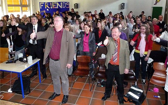 Von Mittwoch bis Sonntag vergangener Woche waren Schulleitungen, Lehrkräfte, Schülerinnen und Schüler aus Italien, Portugal, der Türkei und Polen zu Gast an der Integrierten Gesamtschule, um in Workshops gemeinsam an dem Projekt-Thema "Fun for future –Let´s love learning" zu arbeiten. Untergebracht waren die ausländischen Gäste aus Venedig, Istanbul, Alter do Cao und Elblag in den Familien von SchülerInnen und Lehrkräften. Nach einem ersten Kennenlernen sind schnell Freundschaften entstanden, und man ist begeistert von der Möglichkeit, sich bereits im April in Istanbul zu treffen.