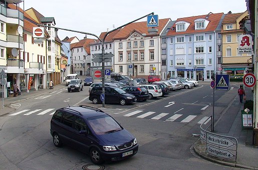 Im April sollen die Bagger kommen Der Autoverkehr auf dem Neuen Markt soll weniger werden. Die Bushaltestelle wird auf der Westseite des Platzes bleiben (links im Bild). (Foto: Hubert Richter)(hr) Damit die Bauarbeiten für die neue Straßenführung im Bereich Neckarstraße/Brückenstraße beginnen können, musste der Eberbacher Gemeinderat heute noch einige Beschlüsse fassen. Im Detail ging es vor allem um die Verlegung einer Bushaltestelle und um die Verkehrsführung für Radfahrer.