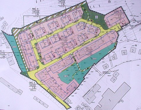 Wohngebiet am Ohrsberg rückt näher (Repro: Hubert Richter)(hr) Ohne wesentliche Änderungen geht der Entwurf für den neuen Bebauungsplan Nr. 83 "Wolfsacker" in die nächste Offenlage. Gestern fasste der Eberbacher Gemeinderat Beschlüsse zu den Stellungnahmen der Behörden und zu den Ergebnissen der Bürgerbeteiligung.