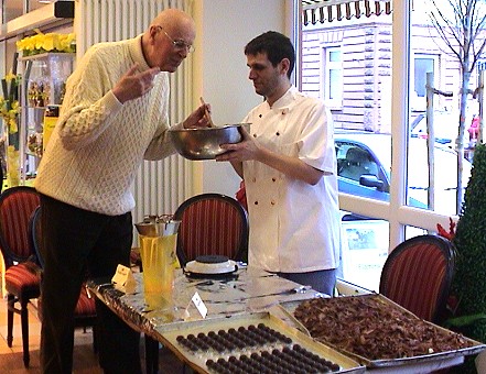Süße Leckereien mit bärlauchiger Note (Foto: Claudia Richter)(cr) Naschkatzen und Bärlauchliebhaber hatten gestern im Café Viktoria in Eberbach die Gelegenheit, dem Juniorchef des Hauses bei der Herstellung von Bärlauchpralinen über die Schulter zu schauen.