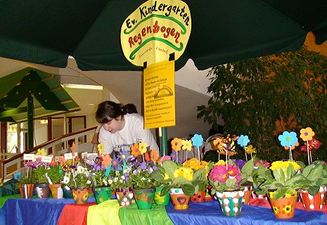 Im Foyer sponnen zwei Damen des Spinnzirkels bärlauchfreies Garn, und der Kindergarten Regenbogen bot selbst gestaltete Blumen- und Kräutertöpfe zum Kauf an.