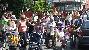 Um 14 Uhr setzte sich der bunte Zug, angeführt vom Eberbacher Fanfarenzug, am Turnplatz in Bewegung. Mit dabei waren zahlreiche Kinder der drei katholischen Kindergärten mit prächtigen Sommertagsstecken sowie geschmückten Fahrrädern und Rollern. Begleitet wurden sie von ihren Eltern, Verwandten und Freunden. Die Jugendfeuerwehr zog den im städtischen Bauhof gebauten großen Schneemann aus Holz und Papier durch die Straßen, und die Pfadfinder Silberreiher, die zum 50. Mal beim Sommmertagszug mitmachten, trugen wieder die Sommer- und Winterfiguren. Unter sicherem Geleitschutz der Eberbacher Polizei zog die bunte Schar durch die Altstadt und die Friedrich-Ebert-Straße zur Theodor-Frey-Schule. Dort begrüßte Günter Lipski vom Bürger- und Heimatverein alle Teilnehmer. Zu musikalischer Begleitung durch die Katholische Pfarrkapelle wurden Frühlingslieder gesungen, und drei mutige Kinder trugen Frühlingsgedichte vor.