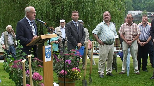 Symbolischer erster Spatenstich für Jahrhundertbauwerk Bürgermeister Peter Kirchesch bei seiner Ansprache. (Foto: Hubert Richter)Mehr Bilder (Klicken zum Vergrößern):
