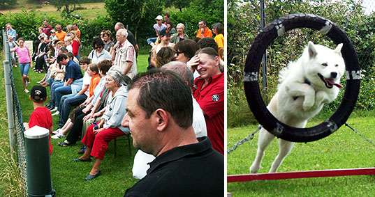 Querschnitt der Vereinsarbeit gezeigt Die Fotos zeigen Szenen aus den Vorführungen mit den Agility-Übungen und einen Blick in die Reihen der vielen interessierten Gäste. (Fotos: Thomas Baumgartner)