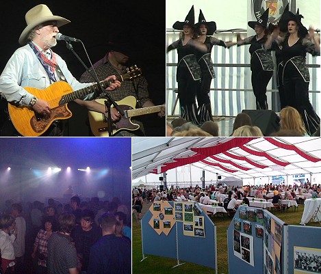 Am Freitagabend gab sich im Festzelt der Rundfunksender "Radio Regenbogen" mit einer DJ Night die Ehre, zu der sich gut 1.500 Fans einfanden (Bild unten links). Noch einmal fast 1.000 Besucher kamen - teils stilecht im Westernlook - zum Country-Abend mit den Hamburger Oldtimern "Truck Stop" (Bild oben links), die seit den 70er Jahren bekannt sind und damals etliche Hitparadenkracher landeten. Die Vorgruppe "Louisiana" hatte das Publikum mit teils rockigen Countryklängen gut aufgewärmt.