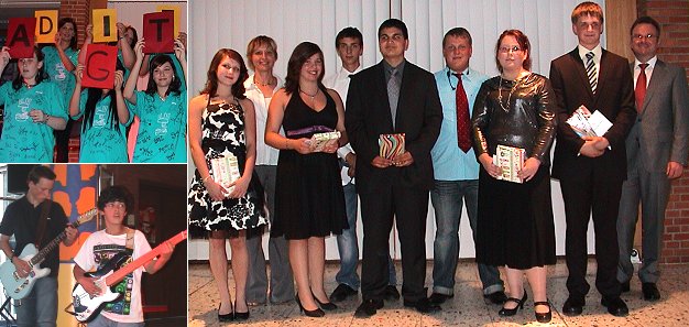 Das Rahmenprogramm gestaltenen die Klasse 9a mit einem Liedbeitrag, die 9b mit einer Powerpoint-Präsentation und die 9c mit einer Tanzeinlage. Die musikalische Gestaltung übernahm die Schulband unter der Leitung von Johannes Solf.